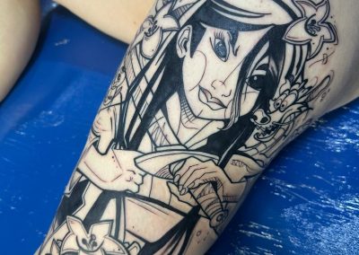 Für mich steht die Zufriedenheit meiner Kunden an erster Stelle. Ich respektiere ihre Vision und Vorlieben zutiefst und erkenne an, dass ihr Tattoo eine lebenslanzge Verpflichtung ist. Dennoch biete ich auch Beratung an, um sicherzustellen, dass jedes Stück harmonisch mit ihrer Physis verschmilzt und ihre einzigartige Identität widerspiegelt. Mein Ziel ist einfach: Tattoos zu liefern, die die Erwartungen übertreffen und meine Kunden vollständig zufrieden aus meinem Studio gehen lassen.